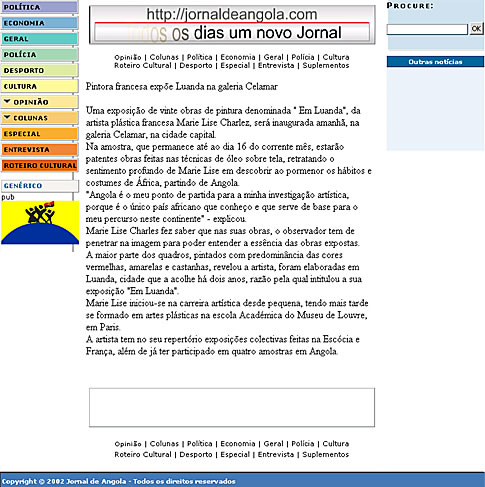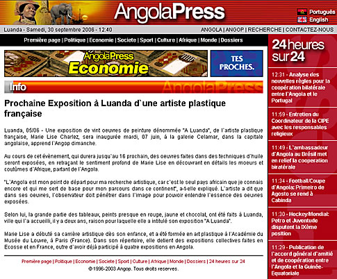 Propriété artistique et intellectuelle Les textes, les reproductions de tableaux, les graphismes présents sur ce site, et le dit site, lui-même, font l'objet de protections juridiques relatives à la propriété artistique et intellectuelle, et ceci, pour la durée conférée par le droit d’auteur. Contenu et objet de ce site Destiné à présenter les œuvres de Marie Lise Charlez, ce site retrace l'évolution de son art au travers de différentes périodes. En effet, après avoir suivi des cours d’arts plastiques à Paris, elle a poursuivi sa progression en fréquentant un atelier de peintres italiens. Puis, ce fut le début de ses séjours prolongés, hors de nos frontières. Marie Lise est allée parfaire ses connaissances en se rendant à la Gray School of Art d'Aberdeen. De cette période, sa production a été celle d’œuvres classiques et néo-impressionnistes. Plan du site : Accueil et introduction (Préambule de Marie Lise Charlez) Contact : Vous êtes galeriste, vous organisez des expositions, vous souhaitez être invité à un vernissage … parce que vous avez été séduit par le travail de Marie Lise ; alors, n’hésitez pas à prendre contact avec elle. Webmaster : Ce site a été conçu, réalisé, et référencé auprès des moteurs de recherche par la société Cydergies (9, rue de la Sabotte - 78160 Marly-le-Roi - France - www.cydergies.fr), d'après les documents fournis par Marie Lise Charlez. |